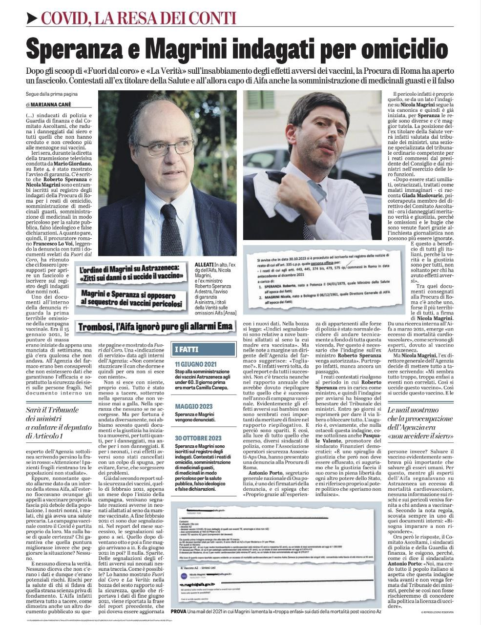Ti aspetti di leggere il giorno dopo chissà quali notizie su tutte le pagine del giornale: le "AIFALEAKS", come pomposamente dichiarato nella trasmissione Fuori Dal Coro su Rete 4, sarebbero riuscire a mandare in prigione con un servizio di ben 6 (sei) minuti l'ex ministro della Salute odiatissimo dai novax, Roberto Speranza.